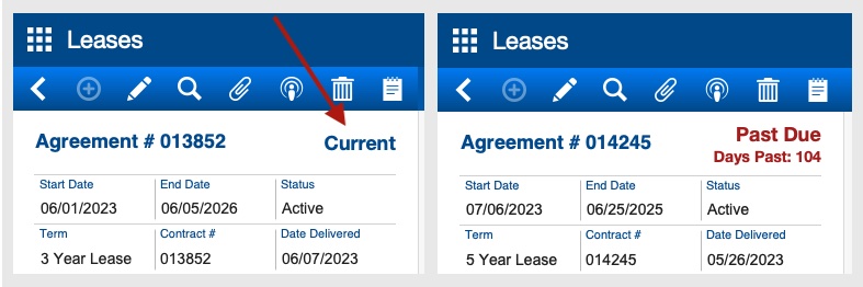 1. Past lease data updated to show as past due during payment grace period if not previously marked