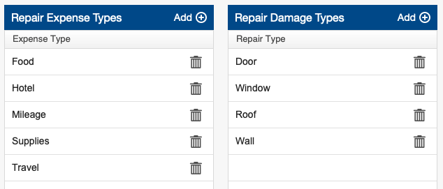 1. Settings, Preferences Panel, List Options 2 sub panel -- New category added for Repairs to define damage type