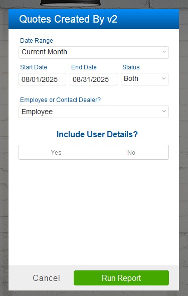 Quotes Created by Report: Some updates have been made to the Quotes Created by report. You can now run the report for specific users, allowing for more targeted insights. Additionally, a correction has been made to ensure the sale amount displayed in the report matches the amount used to calculate commission. This change ensures greater accuracy in reporting and commission tracking.