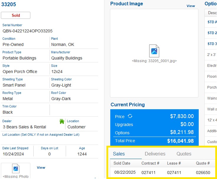 A small change has been made in the Sales tab of a Product. You will now see Sold Date, Contract #, Lease #, Quote #.