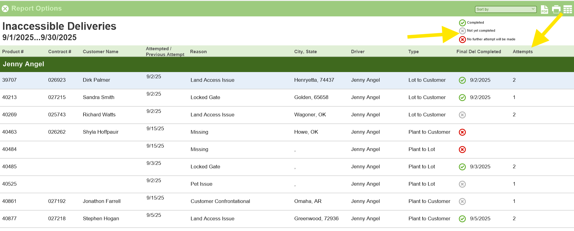 Inaccessible Deliveries: We’ve made several upgrades to the inaccessible report to improve its functionality and clarity. The updated version now tracks the delivery process from the first inaccessible attempt through to the completion of the final delivery. This provides a more comprehensive view of the entire delivery journey. Additionally, a legend has been included in the report to help users better understand the symbols used throughout.