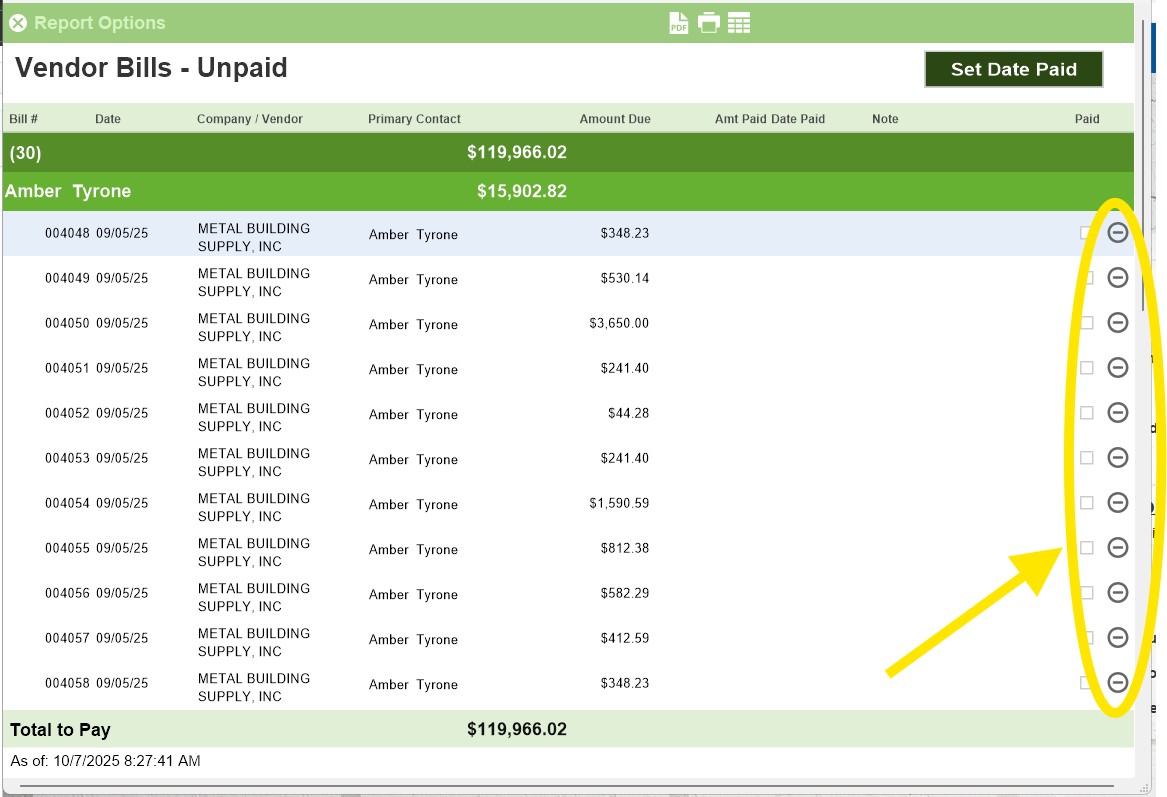 2. Vendor Bills-Unpaid: We’ve updated the Vendor Bills Unpaid Report to include a new Omit feature. This works the same way as the omit option in the other unpaid commission reports. If there’s a specific line item you don’t need to mark for payment, simply click Omit to temporarily remove it from view. When you rerun the report, the omitted line will automatically reappear.