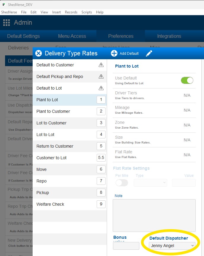 *Change* A change has been made to how you set up a default dispatcher. This setting has now moved inside Settings > Preferences > Delivery New and will be configured per delivery type. You will still need to toggle on the “Use Dispatcher” option for the setting to apply. Only vendors with the Dispatcher checkbox enabled will appear in the available list.