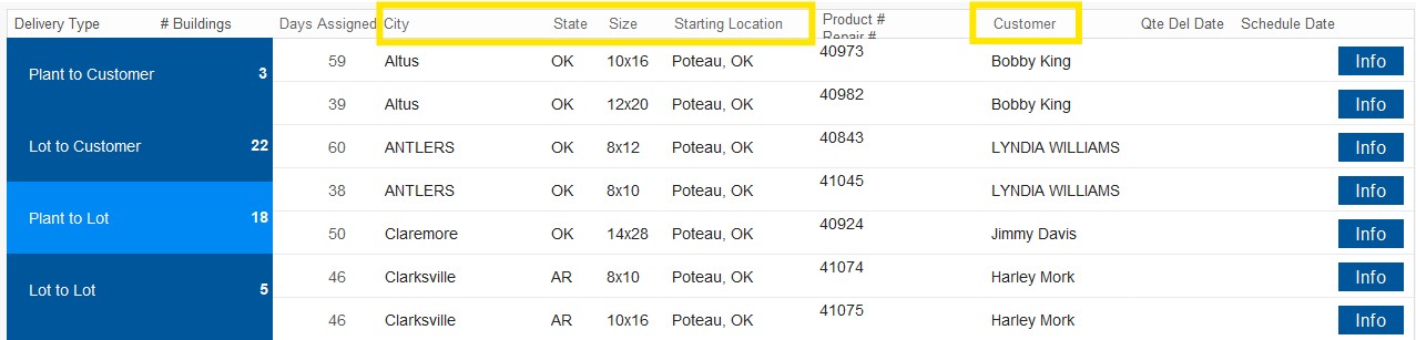 2. You can now sort Plant to Lot and Lot to Lot deliveries directly from the Vendor layout. Sorting options include City, State, Size, Starting Location, and Customer, allowing for easier organization and quicker access to specific delivery records.